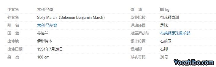 索利·马奇现效力于英超的布莱顿足球俱乐部。