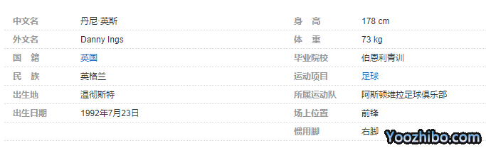 | 13/14 | 英格兰足球冠军联赛 | 伯恩利 | 40 | 21 | 7 | 1 | 3539 |