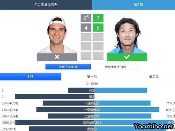 本周来到了马德里大师赛,张之臻十分好运,在比赛开始前获得了直接晋级正赛的机会。他的签表也不错,首轮比赛的对手资格赛选手罗迪奥诺夫。罗迪奥诺夫世界排名第119位,两人没有交手纪录。