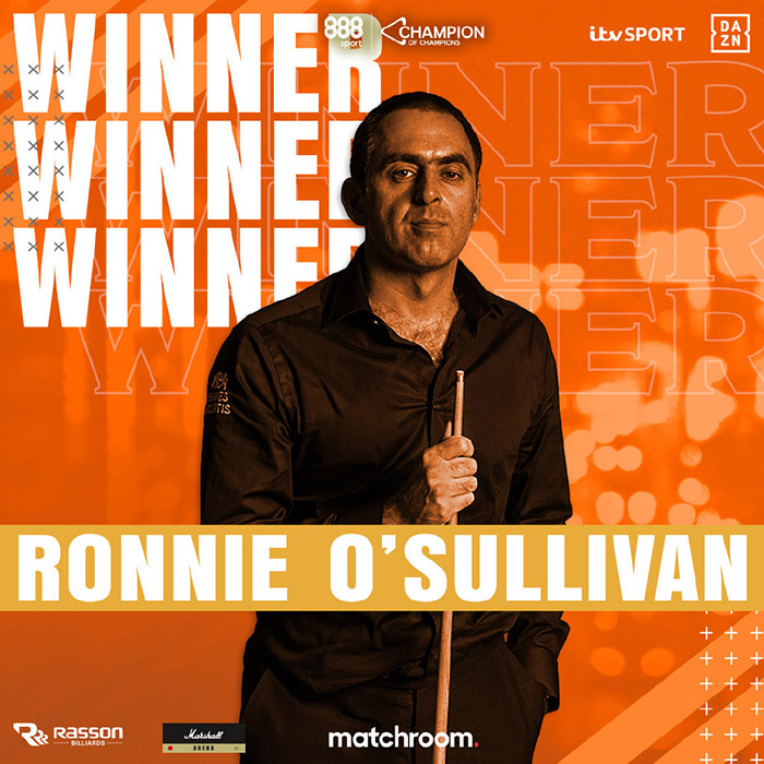 半场第五局,奥沙利文把握住上手机会,一杆得到51分以77-11取胜3-2领先。第六局艾伦迅速给予回应,一杆破百得到104分,零封追至3-3。此后艾伦完全掌握场上主动,第七局几次上手以73-10拿下,第八局单杆74分零封5-3获得赛点。第九局奥沙利文上手26分红球失误,艾伦一杆66分以72-26结束战斗,奥沙利文连丢三局以3-6败北。