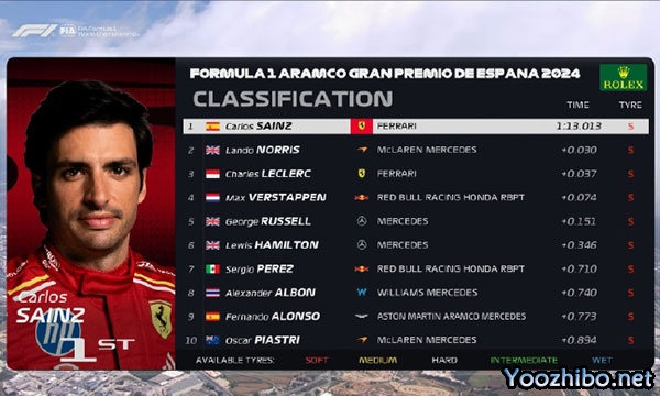 2024F1西班牙大奖赛第三次练习赛成绩表: