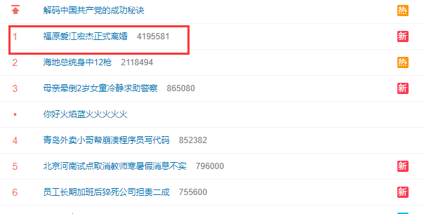 很快“福原爱江宏杰正式离婚 ”的话题就登上热搜榜的第一名,大家对于福原爱离婚还是非常关注度,从舆论上来看,虽然有部分的网友指责他们的行为给两个孩子带来伤害,但大部分的人都表示祝福,希望他们未来可以照顾好孩子的同时继续寻找属于自己的幸福。