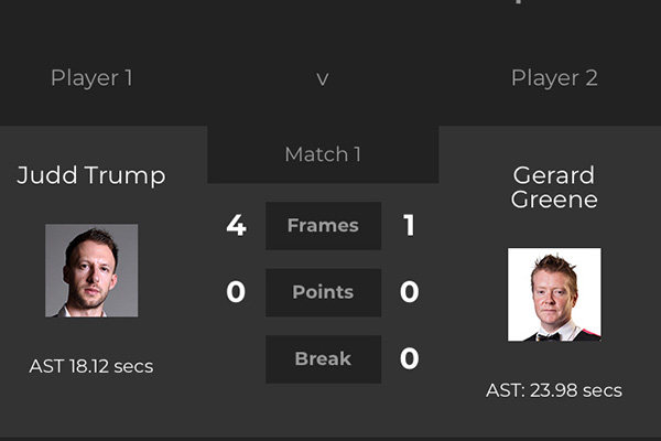 对阵杰拉德-格林,尽管特鲁姆普的实力明显高出一筹,但两人的第三次交锋中,却是杰拉德-格林率先发力。第一局,特鲁姆普开局率先上手得分,但仅仅得到一分之后断掉,杰拉德-格林上手打出单杆75分,75-1胜出,1-0先拔头筹。