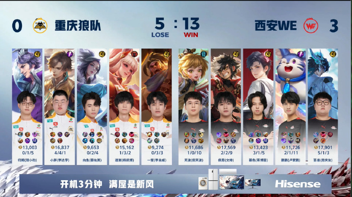 24直播网讯 北京时间07月18日,重庆狼队在2024KPL夏季赛常规赛第二轮W3D2的比赛中,遭遇了西安WE队的强势挑战。这场比赛最终以西安WE队3-0的大胜收场,展现了他们的出色实力和团队协作能力。