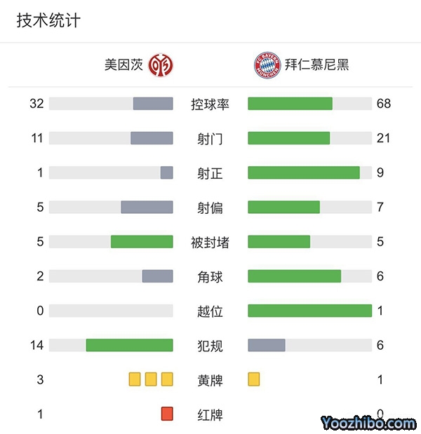 全场比赛结束,最终拜仁客场4-0十人美因茨成功晋级八强。