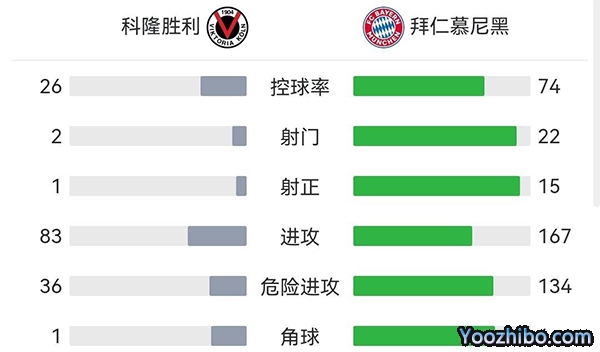 全场比赛结束,维多利科隆0-5拜仁慕尼黑!