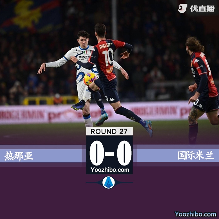 24直播网2月26日讯 北京时间2月26日凌晨4时05分,2021-2022赛季意甲第27轮展开角逐,国际米兰做客对阵热那亚。上半场双方均无建树,古德蒙德松错失一次单刀良机。国际米兰半场0-0战平热那亚。下半场两队也没有进球,丹布罗西奥有一次头球攻门击中横梁。最终国际米兰客场0-0战平热那亚,近4轮联赛无法取胜。在少赛一轮的情况下,国米继续排名积分榜第二,落后领头羊AC米兰2分。