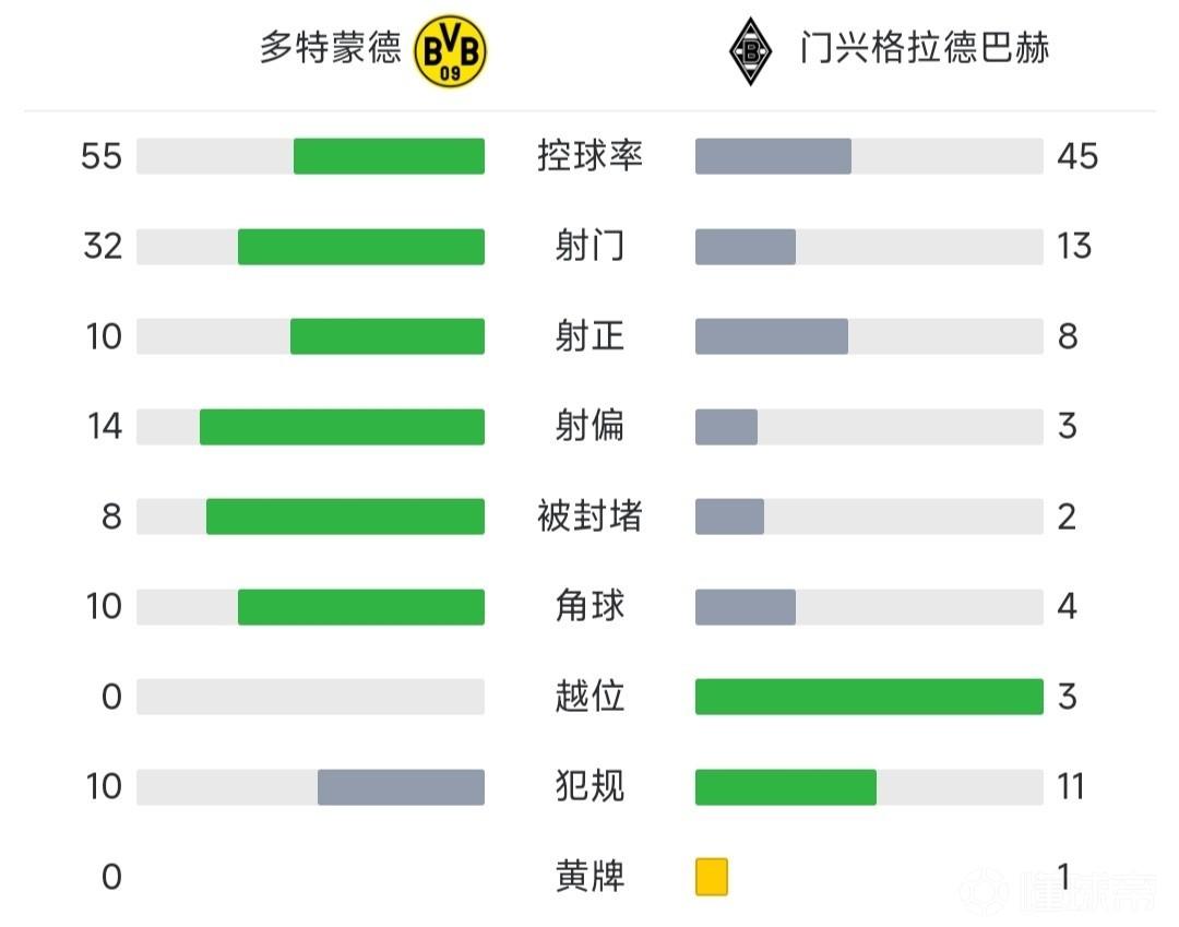 全场比赛结束,多特蒙德5-2门兴。