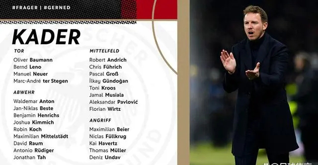 24直播网讯 北京时间3月14日,德国队最新一期大名单公布,穆勒领衔,6名新人入选!