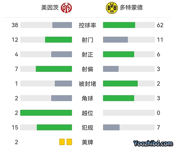 全场比赛结束,最终多特2-1逆转击败美因茨。