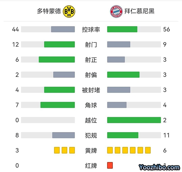 第32分钟,穆西亚拉禁区左侧回敲,格雷茨卡外围一记贴地斩直钻网窝死角,多特蒙德0-1拜仁慕尼黑!