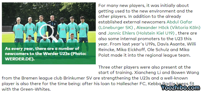 24直播网06月22日讯据云达不莱梅官网报道,两名中国球员李贤成和王博文已经加入不莱梅U23梯队。