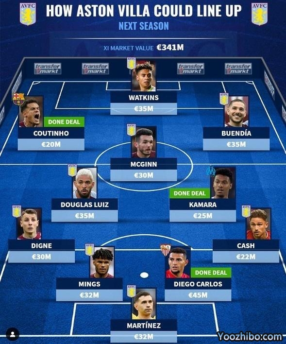 24直播网05月28日讯 近日,维拉在转会市场十分活跃,在2周内连续官宣3笔强援。对此,《转会市场》预测了他们下赛季的首发阵容。