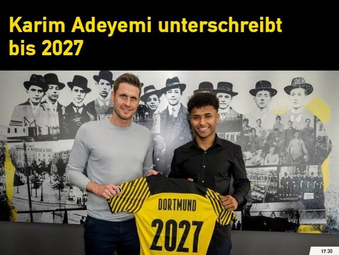 24直播网05月11日讯 多特蒙德官方消息,俱乐部签下萨尔茨堡红牛的德国前锋阿德耶米,双方签约至2027年。