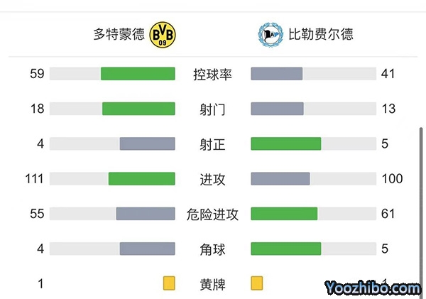 全场比赛结束,多特蒙德1-0战胜比勒菲尔德。