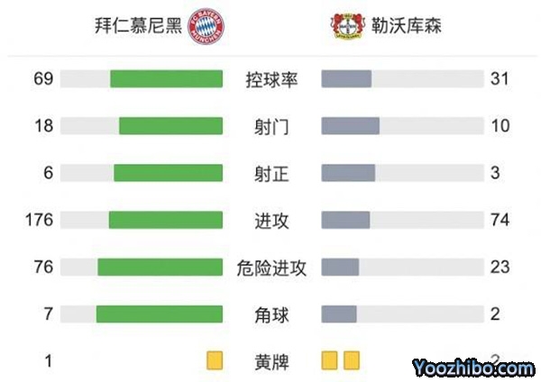 全场比赛结束,拜仁在主场1-1打平勒沃库森。