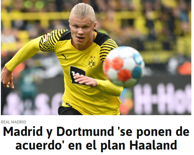 皇马排除了在今夏签下哈兰德的可能性,因为他们不想哈兰德和本泽马在队内产生位置冲突。皇马认为本泽马还能再保持一两个赛季的最佳状态,因此他们计划等到2023年再引进哈兰德。