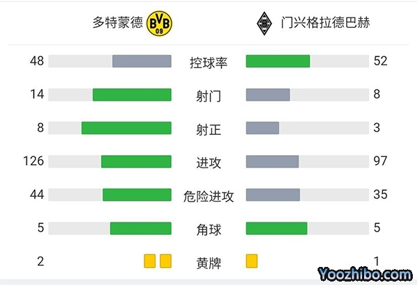 第25分钟,马伦杀到禁区左侧一脚怒射被索默扑出,罗伊斯小禁区前沿停球爆射将球打进,多特蒙德1-0门兴。