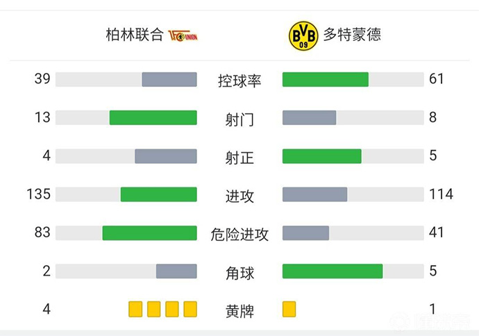 24直播网讯:北京时间2月13日22:30,德甲第22轮,柏林联合主场迎战多特蒙德。上半场罗伊斯门前推射破门,几分钟过后罗伊斯过掉门将推射空门完成梅开二度。下半场格雷罗补射破门,莫瓦尔德破门犯规在先被吹无效。全场结束,柏林联合0-3不敌多特蒙德。