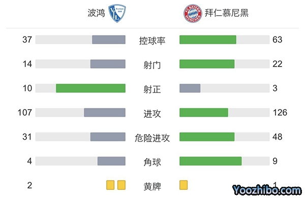 全场比赛结束,拜仁2-4波鸿。