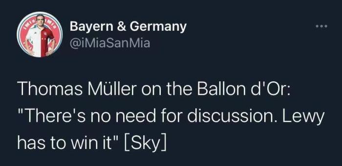 24直播网11月29日讯 ,拜仁主场1-0战胜比勒费尔德。赛后,拜仁球员穆勒接受了天空体育的采访并谈到了金球奖相关话题。