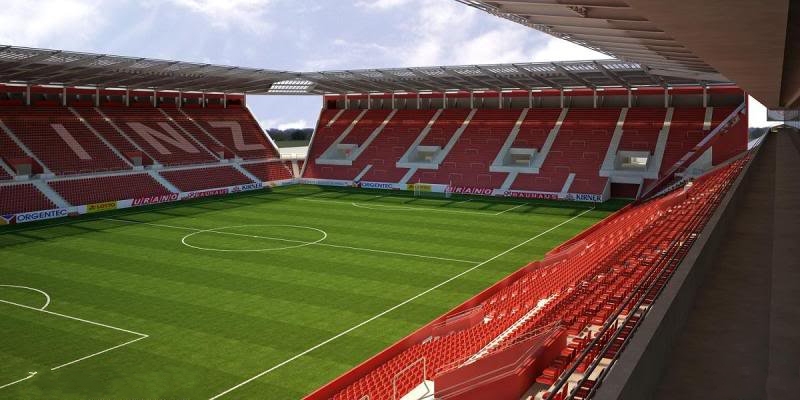 2011年7月3日2006年,为了保持经济竞争力,分析专家认为美因茨05足球俱乐部急切需要新建一座新的体育场以取代年久失修的布鲁赫路体育场。俱乐部青睐的解决方案是直接在哈滕贝格-明希费尔德区内原有体育场的后方新建一座球场,但这无论是在经济上还是在保障附近居民的噪音要求上都是不可行的。这同样适用于将原有体育场扩建为35000个坐席的专业足球场方案。2007年,俱乐部初步规划在格森海姆以西约2公里的欧罗巴克莱塞尔(Europakreisel)兴建全新的多功能体育场。该体育场计划可容纳约35000名观众,并于2009/10赛季成为美因茨队的主场。由于该地点持续存在结构上的问题,美因茨市政府在此期间考虑也考虑了另外的三个发展用地:位于前海德堡水泥厂旧址附近的维森瑙、位于赫西斯海姆和埃伯斯海姆之间的新展会场地、以及位于威斯巴登的美因茨-卡斯特地区。但后者同时还存在着德乙联赛球队韦恩威斯巴登足球俱乐部,因此该选址还导致了激烈的抗议活动。2008年2月19日,新体育场的选址被最终确定在欧罗巴克莱塞尔附近。该体育场方位比起此前的规划向南迁移了800米,以获得必要的连续空间。该体育场造价约为4500万欧元,此外球队还必须支付最高可达1500万欧元的额外发展建设费用和建筑用地购买费。