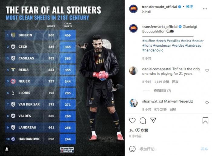 24直播网11月01日讯 谁是本世纪最好的门将?或许大部分球迷都会选择布冯,毕竟本世纪到现在,布冯的表现一直都是顶级的,他一直都是足坛一流的门将,而事实上也是如此。近日,德国权威媒体《转会市场网》就盘点了本世纪门将零封榜,排名榜首的就是布冯,他完成了400次零封,而第二的是切赫,不过切赫非常可惜,因为他职业生涯后期被阿森纳的后防线给坑了,不然的话,他有可能超过布冯哦。