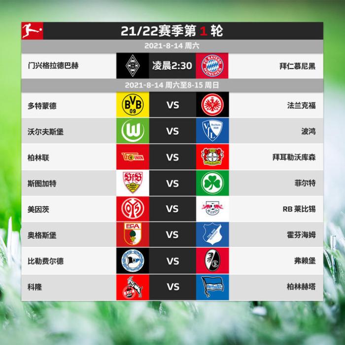 24直播网讯今日,德甲官方公布新赛季赛程,其中揭幕战拜仁慕尼黑将赴客场对阵门兴格拉德巴赫。