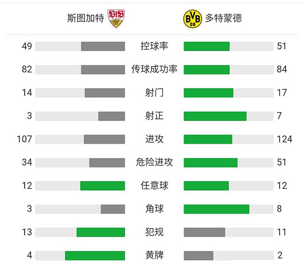 第17分钟,索萨左路送出传中球,身高2米的前锋卡拉德兹奇头球吊射破门,多特0-1落后斯图加特。