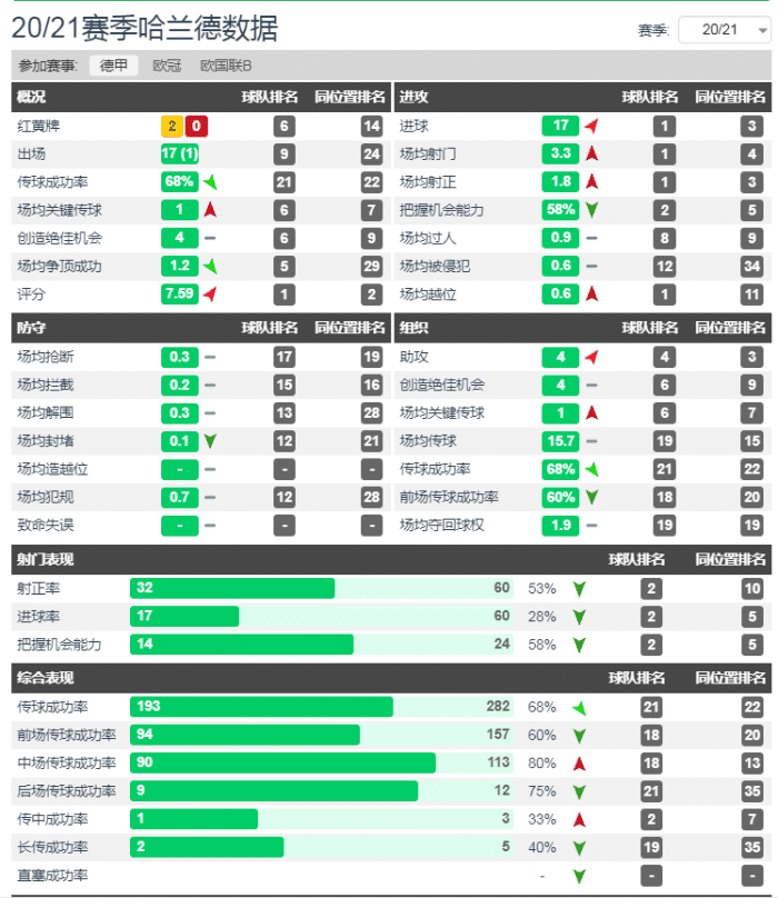 而哈兰德本赛季在联赛赛场上出场17次,打进17球助攻4次,同时他场均射门3.3次,场均射正1.8次,把握机会能力58%。同时场均过人0.9次,场均关键传球1次,场均传球成功率68%,前场传球成功率是60%。从数据来看,在联赛赛场上,姆巴佩的把握机会能力,传球能力更强,同时过人能力也更强,可以说在各项数据方面,姆巴佩都超过了哈兰德。