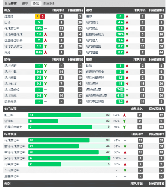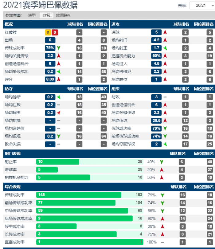 当然,有人说,法甲和德甲的强度不一样,那么就看看欧冠的表现吧!在本赛季欧冠赛场上,姆巴佩出场6次打进5球助攻3次,场均射门4.2次,场均射正1.7次,把握机会能力50%,场均关键传球2.2次,传球成功率79%,前场传球成功率74%。而哈兰德在本赛季欧冠赛场上出场5次打进8球助攻1次,场均射门4.4次,场均射正2.8次,把握机会能力78%,场均冠军传球1.6次,传球成功率74%,前场传球成功率64%。从数据来看,在欧冠赛场上,哈兰德的效率稍高,不过传球方面,还是姆巴佩更强。