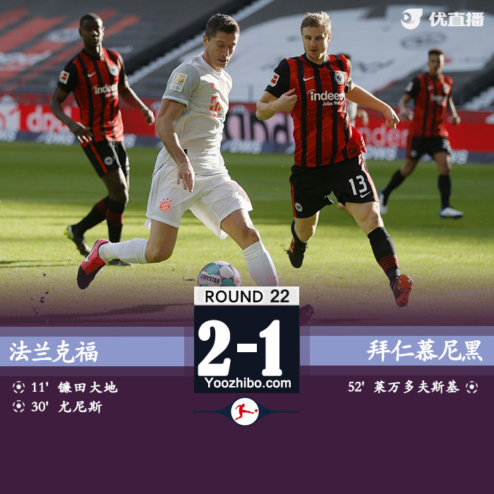 最终,法兰克福2-1拜仁。