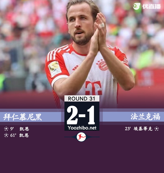 最终比分为拜仁慕尼黑2-1法兰克福。