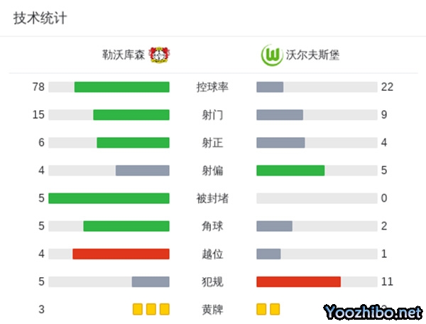 最终勒沃库森4-3逆转沃尔夫斯堡。