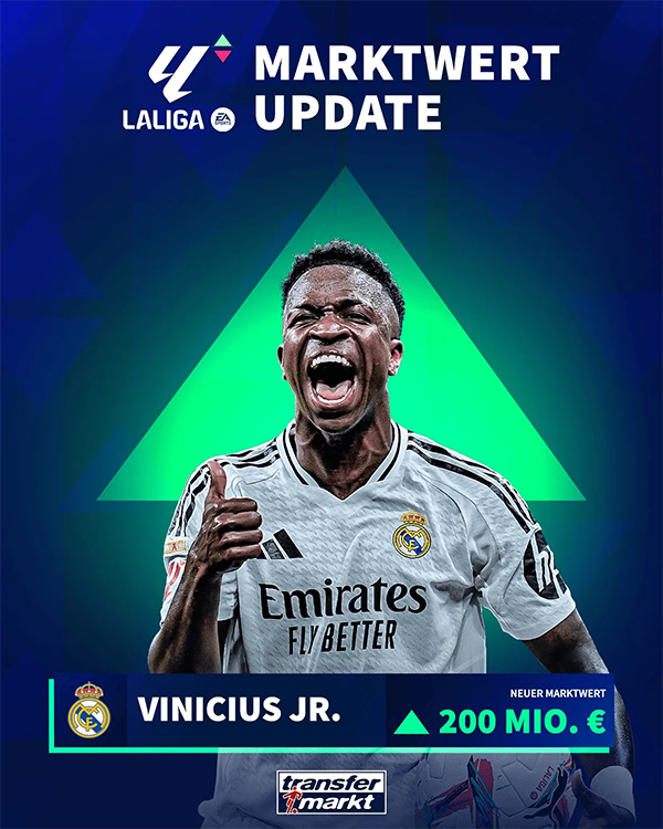 24直播网讯在一个月前,舆论还一致看好维尼修斯赢得金球奖。德转在10月11日宣布,将维尼修斯的身价由1.8亿欧上调至2亿欧,与哈兰德并列世界第一。