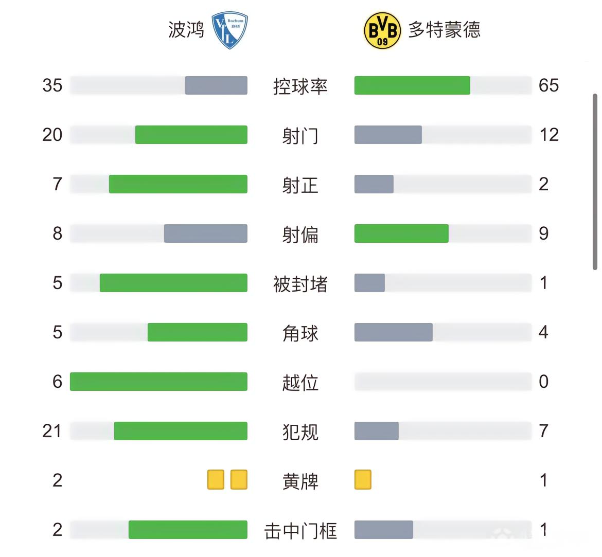全场比赛结束,多特蒙德1-1波鸿。