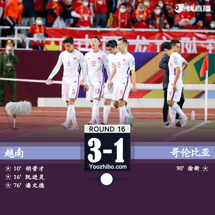 24直播网2月1日讯 北京时间2月1日晚20:00,世预赛亚洲区B组第8轮比赛打响,国足对阵越南。上半场,胡晋才、阮进灵先后破门,国足两球落后;下半场,潘文德世界波杀死比赛,补时阶段,徐新打进挽回颜面的一球。最终,国足1-3不敌越南,8战后仅积5分,彻底无缘世界杯正赛,最后两场世预赛将对阵沙特和阿曼。