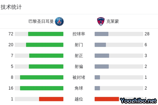 最终,巴黎主场1-1战平副班长克莱蒙