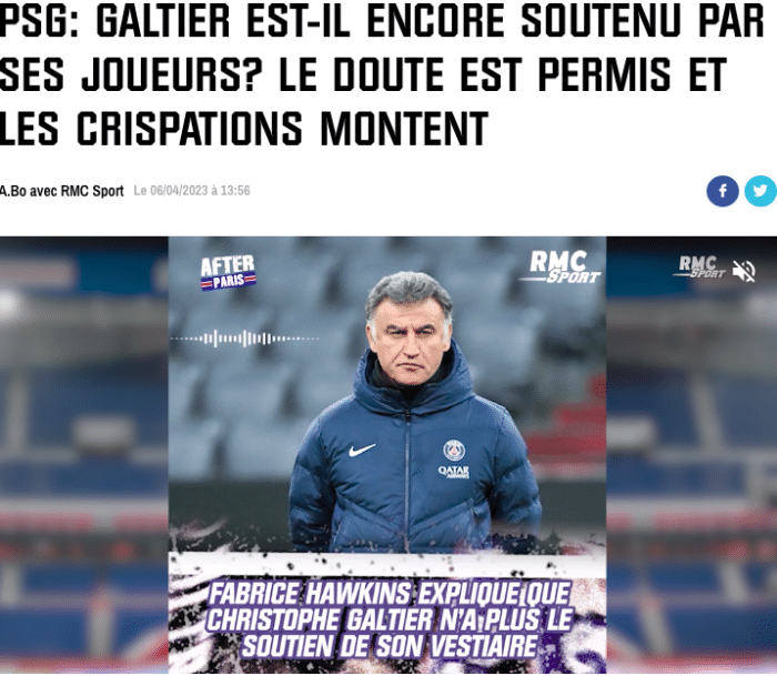此外,梅西和内马尔也被巴黎更衣室看作是被主帅加尔蒂偏护的球员,即使他们俩在场上互刷传球数。为此加尔蒂常常被批评,因为自从执教大巴黎后,他似乎失去了昔日的强硬铁血风格。此前,加尔蒂还能在执教里尔时,对伊尔马兹这样的队内核心球员进行鞭策,但来到大巴黎后他却过度纵容了梅西和内马尔。