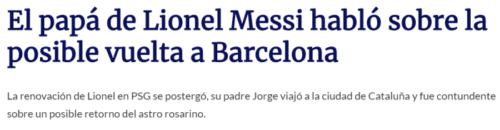 24直播网02月17日据阿根廷媒体Tyc报道,梅西的父亲豪尔赫-梅西在接受采访时表示,他不认为梅西会重返巴萨。
