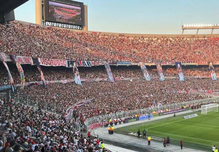 24直播网讯02月14日本轮阿根廷职业联赛,河床在主场2-1战胜阿根廷青年人,河床主场纪念碑球场挂出多位阿根廷球员条幅。