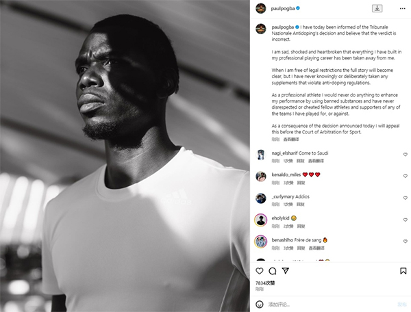 博格巴写道:“我收到了意大利反兴奋剂法庭的决定,我认为这个判决是错误的。对此,我感到难过、震惊和心碎,因为我职业生涯所建立的一切都被夺走了。当我不再受到法律限制时,事情的真相将会水落石出,但我从未故意使用任何禁药。作为一名专业运动员,我绝不会通过使用违禁药物来提高自己的表现,并且我从未不尊重或者欺瞒任何曾效力过或与之竞争过的球队成员和球迷。鉴于宣布的禁赛4年裁决结果,我将向体育仲裁法庭上诉。”