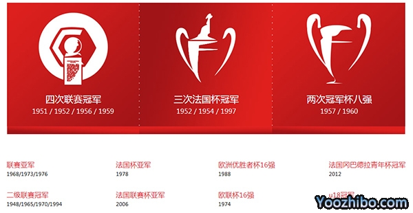 | 法甲 | 冠军 | 1950/51,1951/52,1955/56,1958/59 |