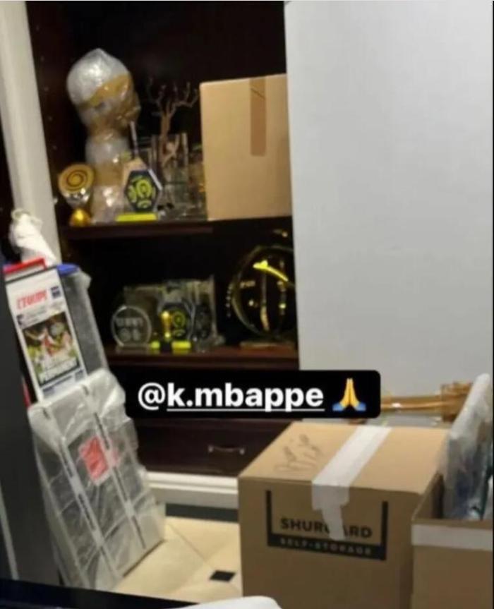 姆巴佩的朋友OraIto晒出了他打包搬家的照片,@了姆巴佩,并配上祈祷祝好的表情,照片中有纸箱,也有奖杯和报刊杂志。