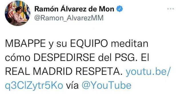 拉蒙-阿尔瓦雷斯表示,皇马其实早就已经敲定了姆巴佩的加盟,至于迟迟为何不宣布,是因为法国球星想要自己宣布这一消息,而皇马选择尊重他的意愿。