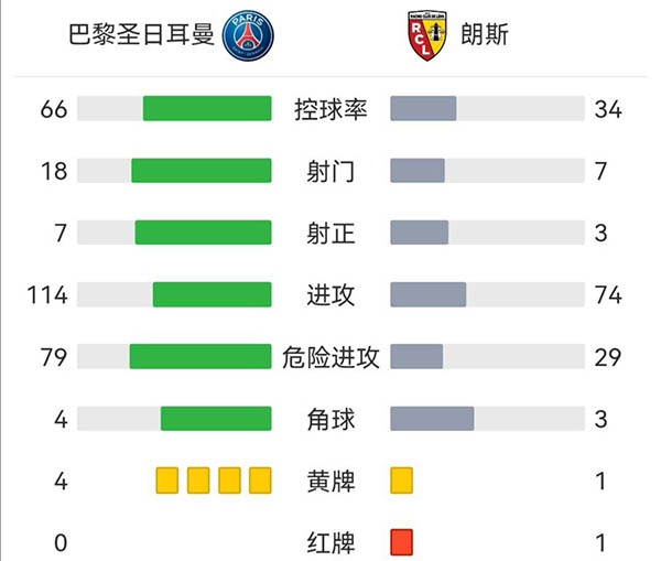 全场比赛结束,巴黎1-1战平朗斯。