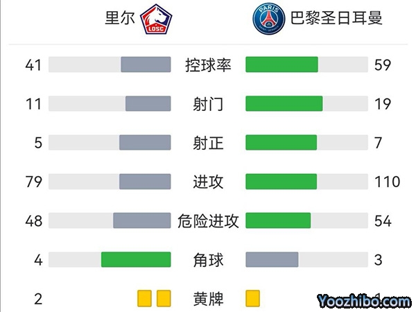 全场比赛结束,巴黎圣日耳曼客场5-1大胜里尔。