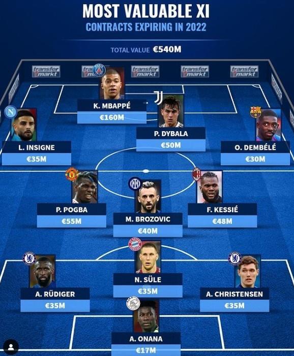 24直播网01月03日讯 ,德国转会市场列出了合同今夏到期球员最贵阵,姆巴佩1.6亿欧领先,整份榜单总身价高达5.40亿欧。