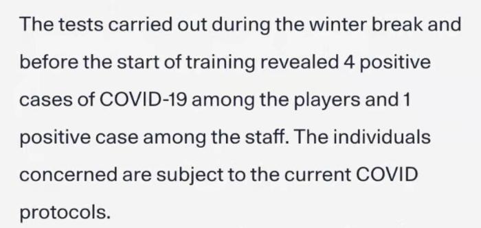 24直播网01月02日讯,巴黎圣日耳曼在冬歇期和训练开始前进行了新冠检测,结果显示有4名球员和1名工作人员结果呈阳性,工作人员中有1例阳性。不过,俱乐部并没有透露感染人员的名单。