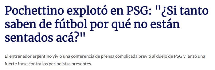 波切蒂诺当时回击这位记者:“这个问题我无法回答,我不理解,如果你那么懂球怎么不坐在我的位置,而是坐在下面?”